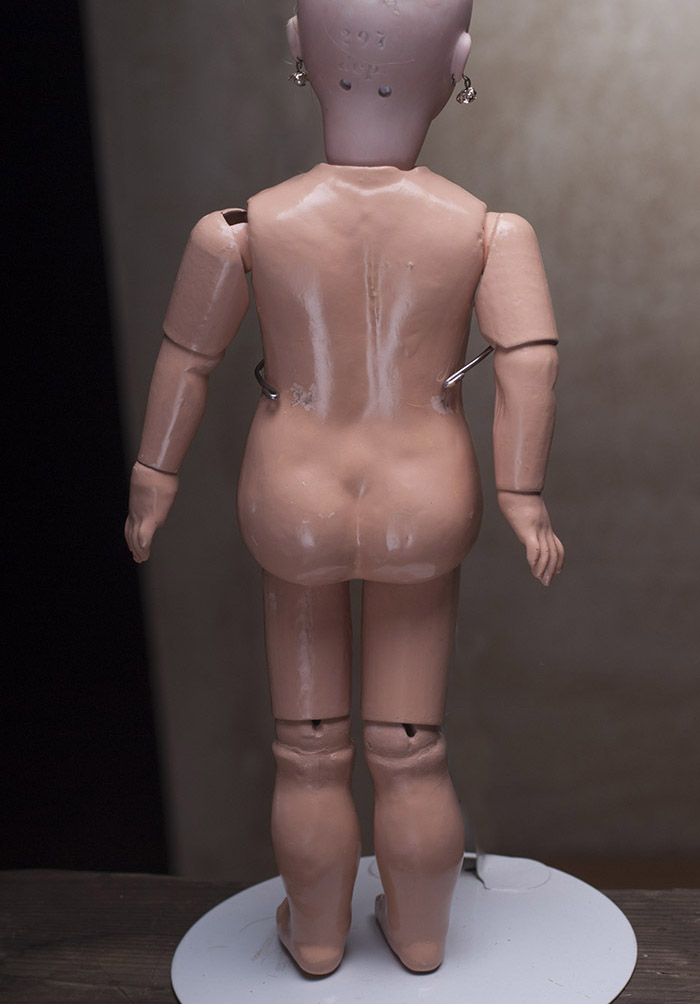 Голова из глазурованного фарфора, глаза голубые, стеклянные, приоткрытый рот с