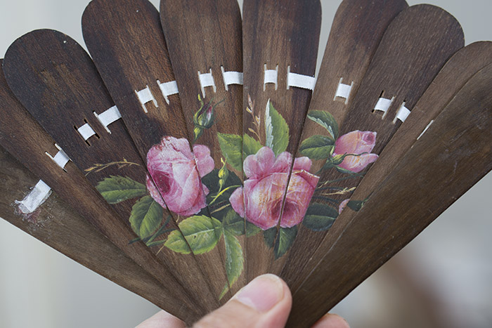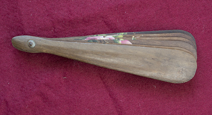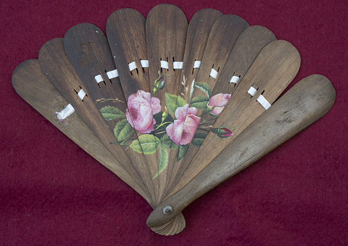 Старинный кукольный деревянный веер, ручная роспись, хорошее состояние. Высота 14 см, когда раскрыт, ширина - 20 см.