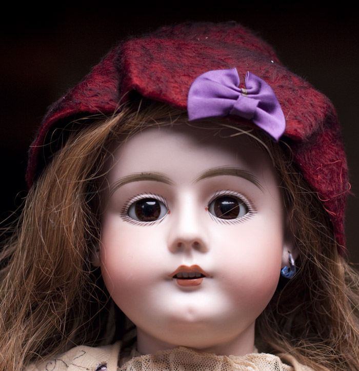 Голова из неглазурованного фарфора в идеальном состоянии, без недостатков. На затылке штамп "15. 79 DEP". Номер 15 - размер куклы, 79 - номер отливки. DEP - регистрационный знак. Голубые стеклянные темно-карие глаза - не закрываются. Уши проколоты, кукла носит сережки. Кукла собрана Франции (тот случай, когда головы закупались к Германии) - тело у куклы французское, из дерева и композита. Ноги от ступни до колен были перекрашены, есть небольшая вмятина на одной ступне. У куклы старинные ботинки, гольфы, белье, бежевый вельветовый костюм - более поздний.Парик из натуральных волос, винтажная шляпка из бордового фетра. Высота куклы 68 см. ___________________________________ КАК КУПИТЬ? - Свяжитесь, пожалуйста, по нижеуказанному емэйлу, уточните цену и заявите о своих намерениях. - Возможна рассрочка: кукла будет зарезервирована после выплаты аванса. Условия - гибкие. Обращайтесь: все обсудим и договоримся. - В Петербурге возможна личная встреча в центре. - Если Вы из другого города, - после того, как выкупите куклу, она будет отправлена Вам почтой ЕМС с номером отправления. Безопасная надежная упаковка - полностью моя личная, персональная ответственность! - Оплата банковским переводом, Контактом, карточкой Виза или Мастеркард. Если есть уточняющие вопросы - пишите, пожалуйста. Справка о производителе HEINRICH HANDWERCK для французского рынка, 1900 годы Стоимость: Продано- Т.С.. По вопросам покупки, пожалуйста, звоните по телефону 8-911-926-5053 или пишите на .